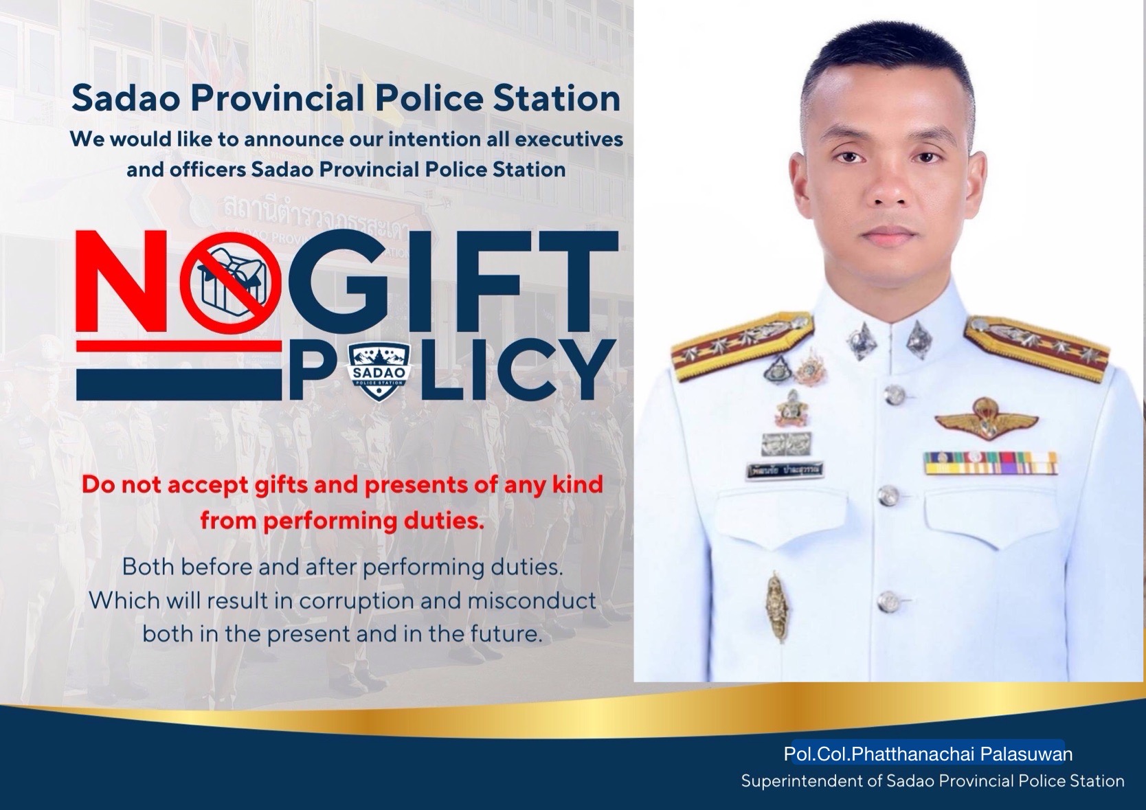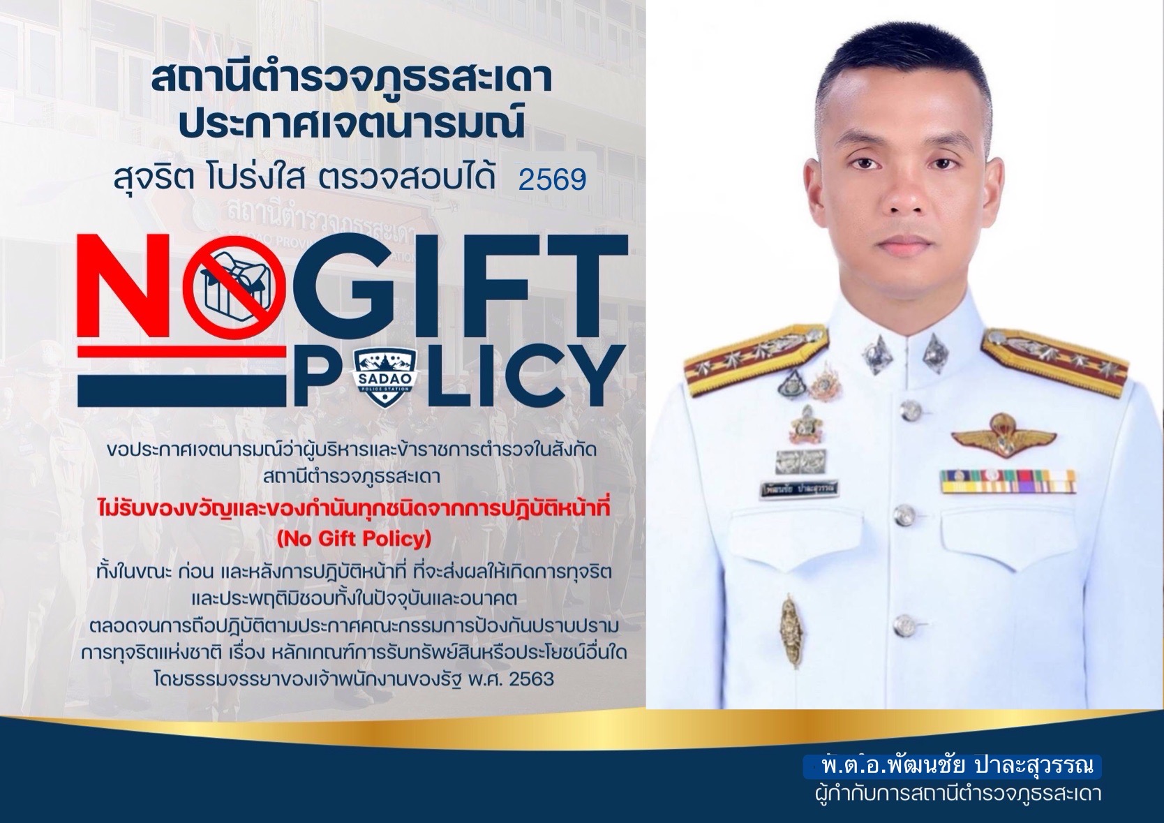 4 ต.ค.68 เวลา 09.00 น. สถานีตำรวจภูธรสะเดา ขอแสดงความยินดีกับ พ.ต.อ.สุรจิต เพชรจอม ผกก.สภ.สะเดา เนื่