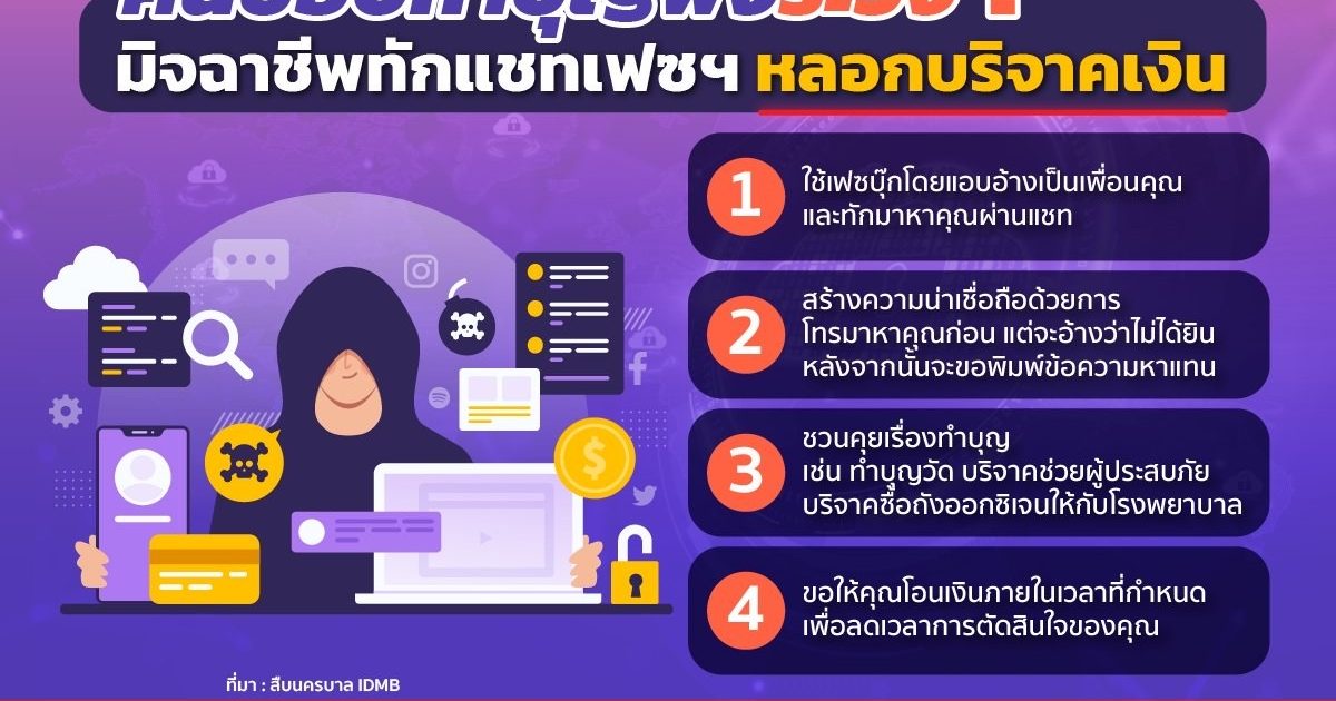 คนชอบทำบุญพึงระวัง! มิจฉาชีพทักแชทเฟซฯ หลอกบริจาคเงิน