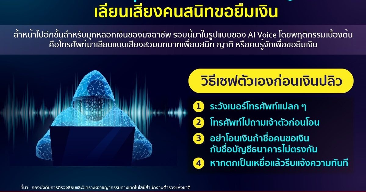 ล้ำหน้าไปอีกขั้นสำหรับมุกหลอกเงินของมิจฉาชีพ รอบนี้มาในรูปแบบของ AI Voice โดยพฤติกรรมเบื้องต้นคือโทรศัพท์มาเลียนแบบเสียงสวมบทบาทเพื่อนสนิท ญาติ หรือคนรู้จักเพื่อขอยืมเงิน