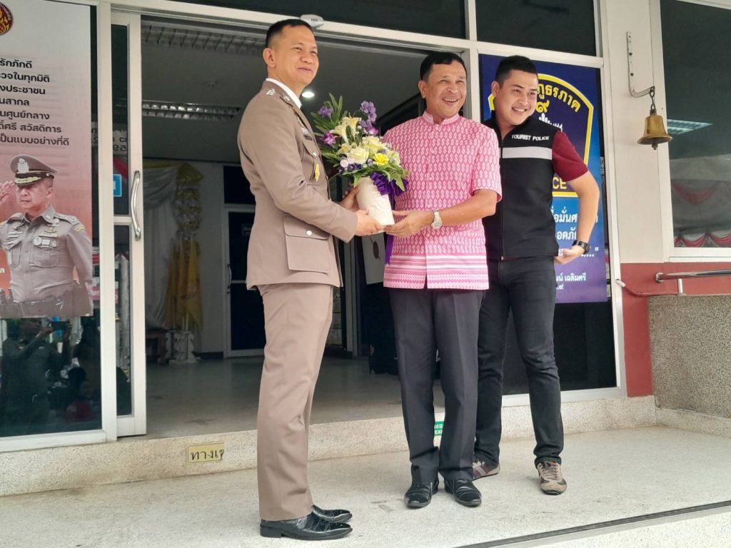 พ.ต.ต.จิรวัฒน์ สุวรรณมณี สว.สส.สภ.สะเดา พร้อมด้วยข้าราชการตำรวจ สภ.สะเดา และประชาชน ร่วมต้อนรับ แสดงความยินดีกับการเดินทางมารับตำแหน่งใหม่ของ พ.ต.อ.สุรจิต เพชรจอม ผกก.สภ.สะเดา