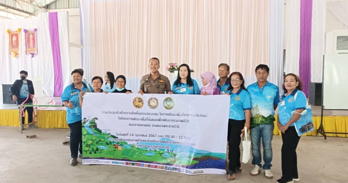 วันที่ 14 กุมภาพันธ์ 2567 เวลา 09.30 น. ภายใต้การอำนวยการโดย พ.ต.อ.สุรจิต เพชรจอม ผกก.สภ.สะเดา พ.ต.ท.ชนาวิน รัตนาวิน รอง ผกก ป.สภ.สะเดา มอบหมายให้ พ.ต.ต.อวยพร อุบลพันธ์ สวป.สภ.สะเดา “ร่วมประชุมรับฟังความคิดเห็นของประชาชน ในการพัฒนาพื้นที่สาธารณะประโยชน์ในโครงการพัฒนาพื้นที่ต้นแบบเพื่อพัฒนาคุณภาพชีวิตแบบอารยเกษตร ตามแนวพระราชดำริ ” ณ อาคารผู้สูงอายุเทศบาลเมืองสะเดา อ.สะเดา จ.สงขลา