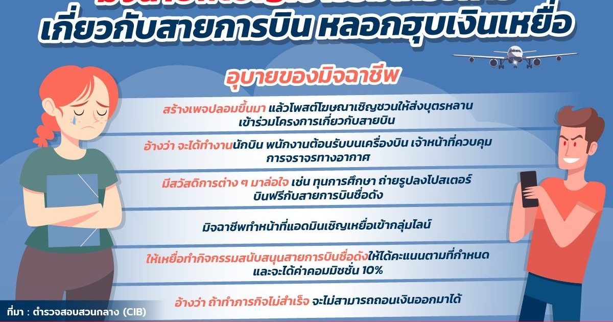 มิจฉาชีพเชิญเข้าร่วมโครงการเกี่ยวกับสายการบิน หลอกฮุบเงินเหยื่อ