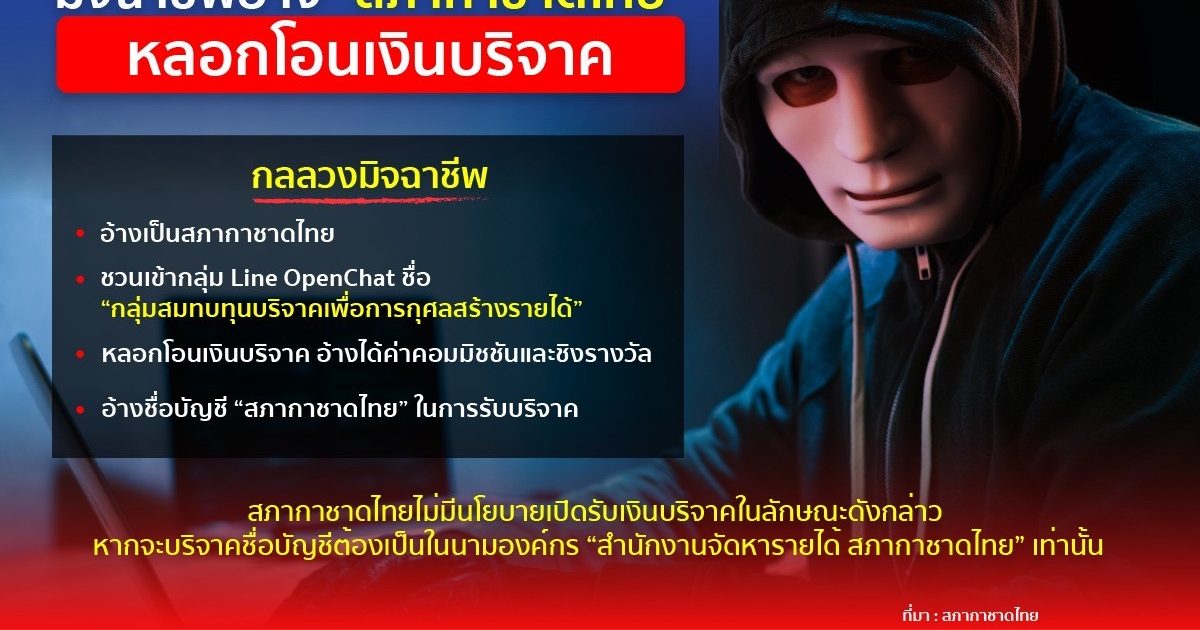 มิจฉาชีพแอบอ้าง “สภากาชาดไทย” หลอกโอนเงินบริจาค