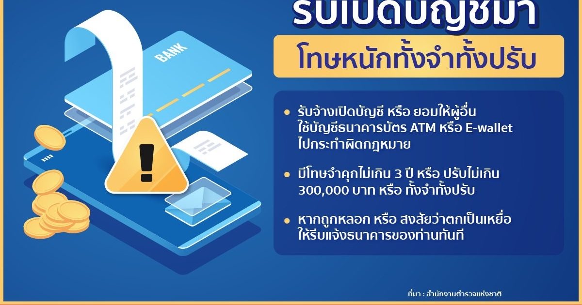 รับเปิดบัญชีม้า โทษหนักทั้งจำทั้งปรับ