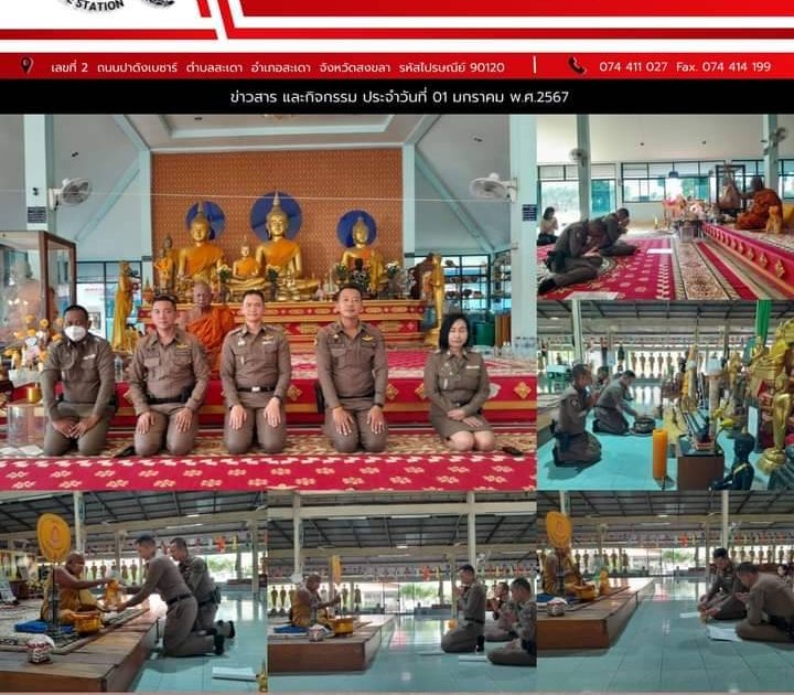 1 ม.ค.67 เวลา 15.45 น. พ.ต.อ.สุรจิต เพชรจอม ผกก.สภ.สะเดา พ.ต.ท.ชนาวิน รัตนาวิน รอง ผกก.ป.สภ.สะเดา พ.ต.ต.อวยพร อุบลพันธ์ สวป.สภ.สะเดา พ.ต.ต.สมหมาย แก้วอ่อน สวป.(ชส.) สภ.สะเดา ร่วมทำบุญถวายสังฆทานเนื่องในวันปีใหม่ 2567 ณ วัดอมฤตวราราม(วัดไทรงาม) และวัดทุ่งปราบ อ.สะเดา จ.สงขลา