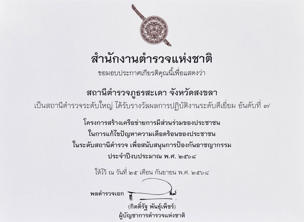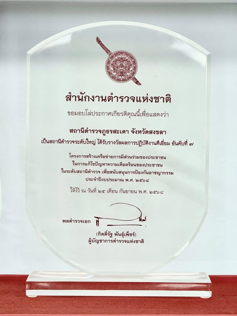 รางวัลเหล่านี้คือ “ความภาคภูมิใจร่วมกันของตำรวจและประชาชนชาวสะเดา”