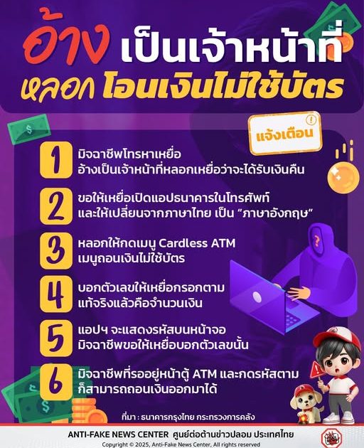6. มิจฉาชีพที่รออยู่หน้าตู้ ATM และกดรหัสตาม ก็สามารถถอนเงินออกมาได้ทันที