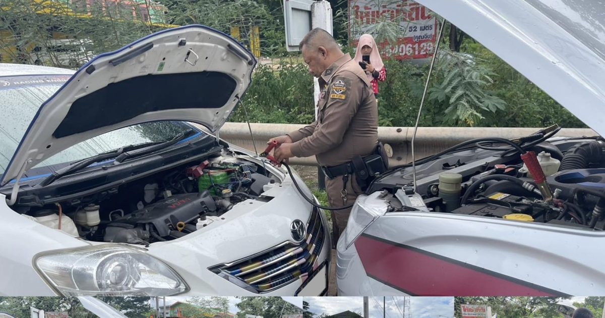 เข้าช่วยเหลือเหตุรถสตาร์ทไม่ติด เนื่องจากแบตเตอรี่หมด