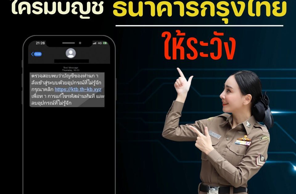 มุกใหม่ ใครมีบัญชีธนาคารกรุงไทย ให้ระวัง โปรดระวัง มิจฉาชีพ ส่ง SMS หลอกลวง และลิงค์ปลอม อ้างเป็นธนาคารกรุงไทย