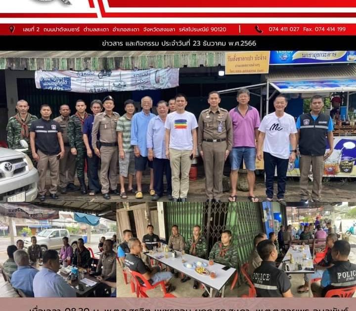 23 ธ.ค. 66 พ.ต.อ.สุรจิต เพชรจอม ผกก.สภ.สะเดา พ.ต.ต.อวยพร อุบนพันธ์ สวป.สภ.สะเดา พ.ต.ต.สมหมาย แก้วอ่อน สวป.(ชส.) สภ.สะเดา ได้เข้าเยี่ยมเยียนประชาชนในพื้นที่บ้านทับโกบ ต.สะเดา อ.สะเดา จ.สงขลา