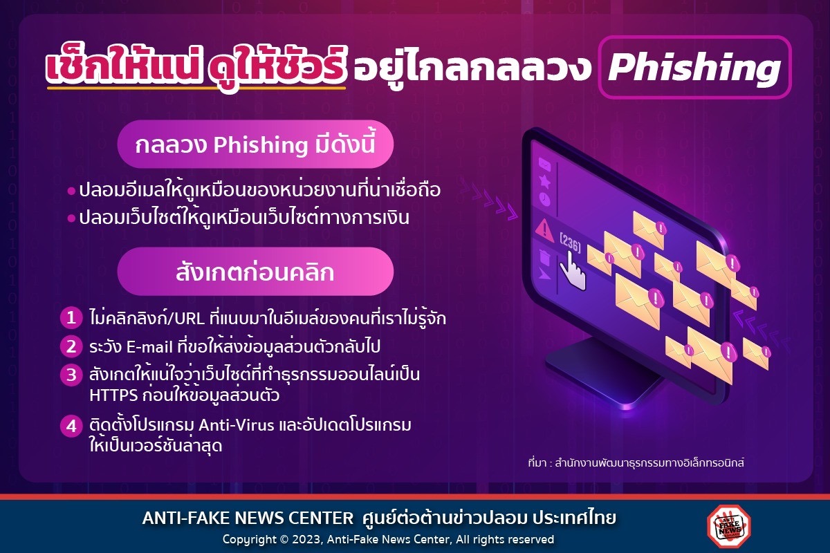 เช็กให้แน่ ดูให้ชัวร์ อยู่ไกลกลลวง Phishing.Phishing เป็นคำพ้องเสียงจากคำว่า Fishing หมายถึงการตกปลา