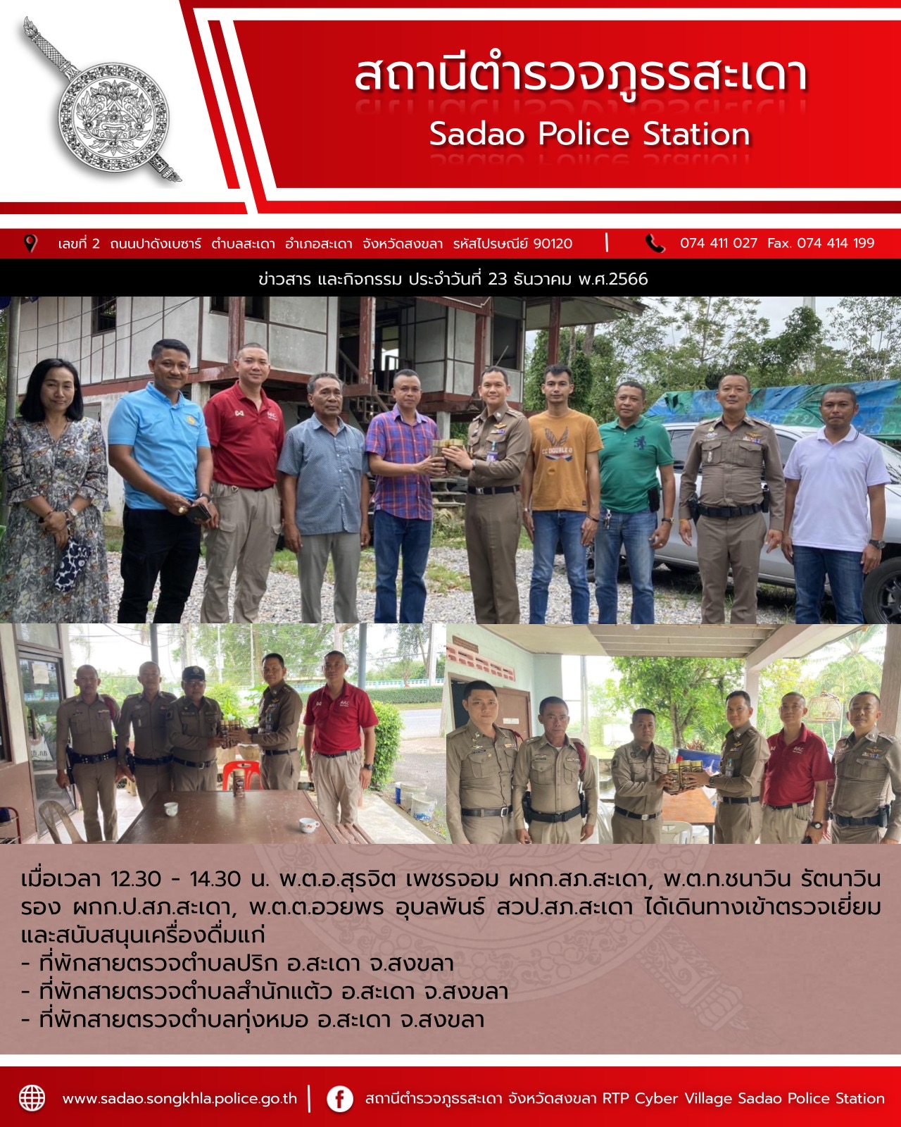 เยี่ยมเยียนสายตรวจชุมชน 23 ธ.ค. 66 พ.ต.อ.สุรจิต เพชรจอม ผกก.สภ.สะเดา พ.ต.ท.ชนาวิน รัตนาวิน รอง ผกก.ป