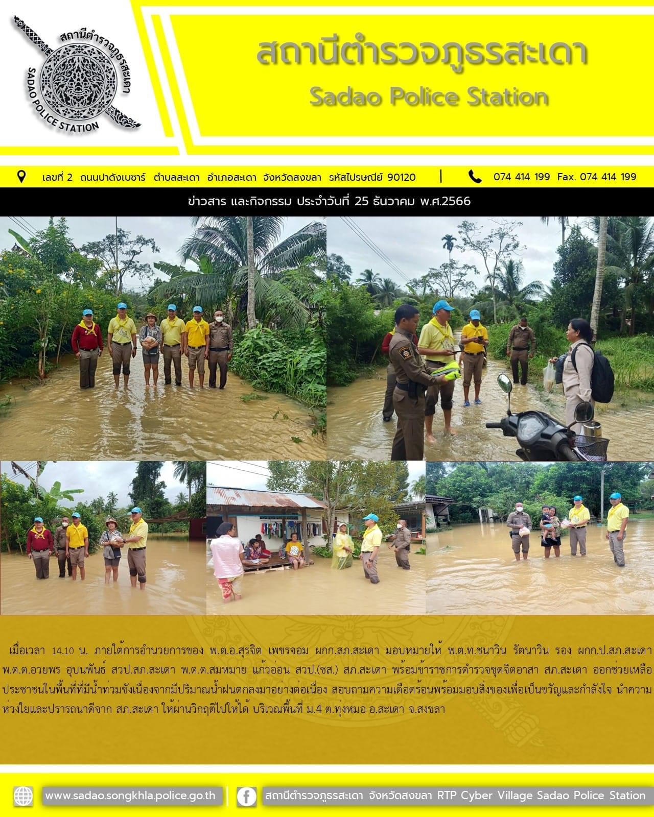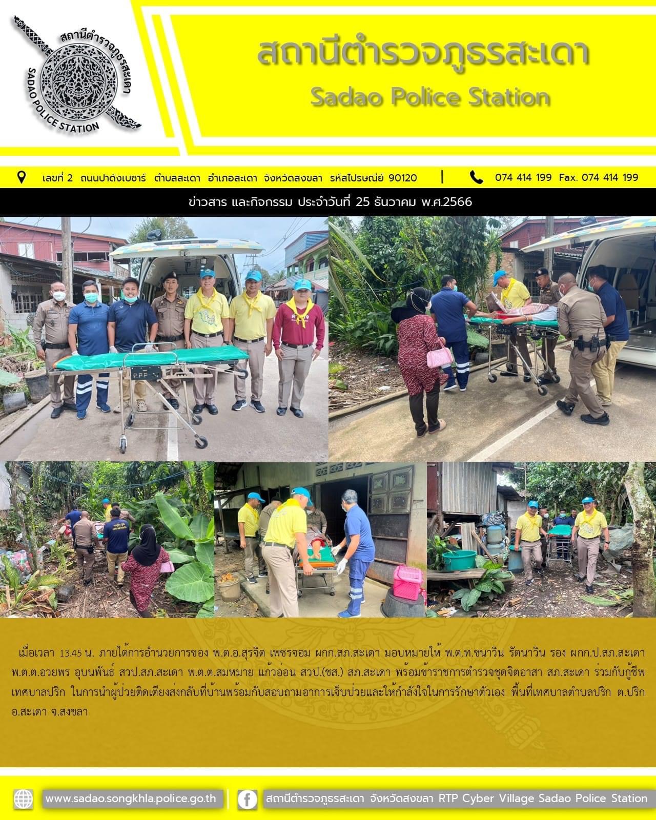 25 ธ.ค.66 เวลา 14.10 น. ภายใต้การอำนวยการของ พ.ต.อ.สุรจิต เพชรจอม ผกก.สภ.สะเดา มอบหมายให้ พ.ต.ท.ชนาว