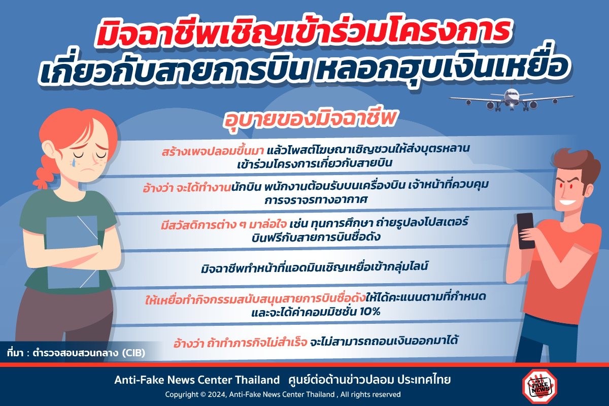 มิจฉาชีพเชิญเข้าร่วมโครงการเกี่ยวกับสายการบิน หลอกฮุบเงินเหยื่อ.ผู้ปกครองทั้งหลายโปรดระวัง มิจฉาชีพโ