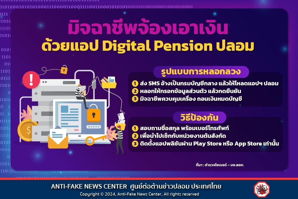 แอปฯ ปลอมขึ้นมามากมาย โดยล่าสุดต้องระวังแอป Digital Pension ปลอม ซึ่งเป็นอีก 1 ช่องทางที่มิจฉาชีพจ้อ