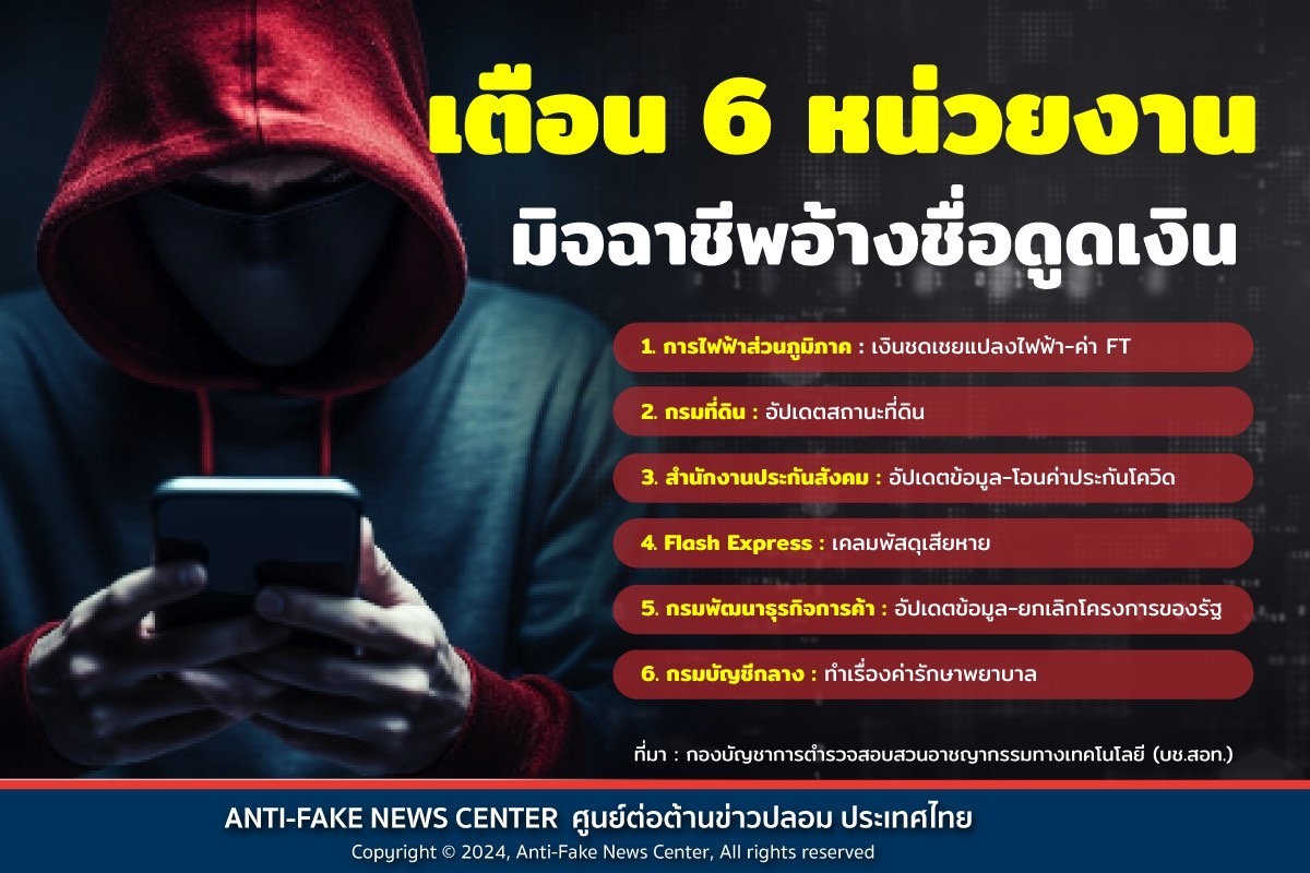 เตือน 6 หน่วยงาน มิจฉาชีพอ้างชื่อดูดเงิน