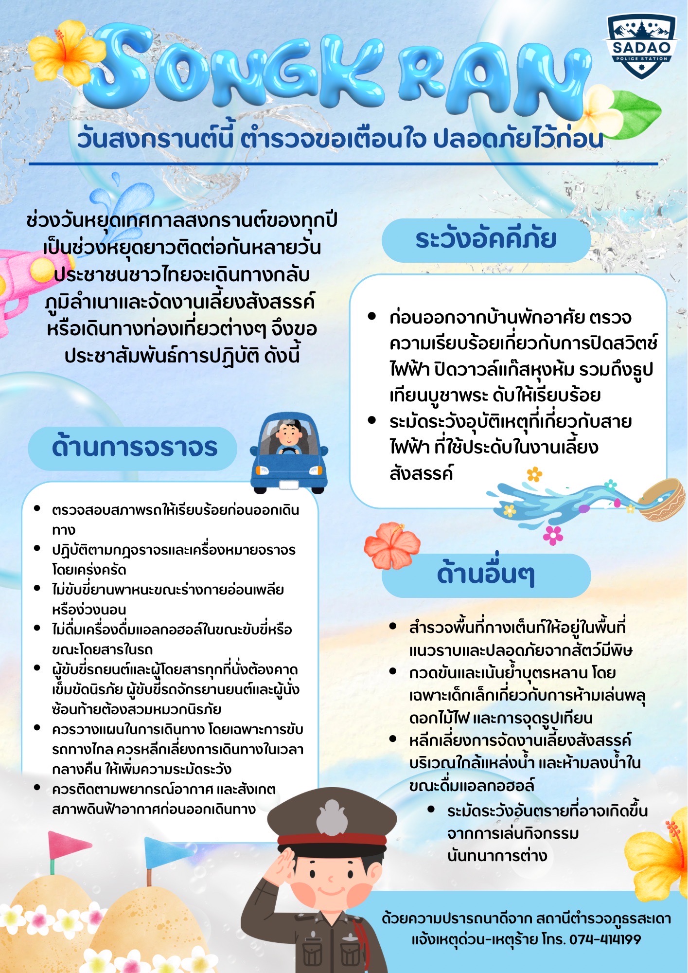 วันที่ 3 เมษายน 2567 เวลา 09.00 น. พ.ต.อ.สุรจิต เพชรจอม ผกก.สภ.สะเดา พ.ต.ท.ชนาวิน รัตนาวิน รอง ผกก.ป