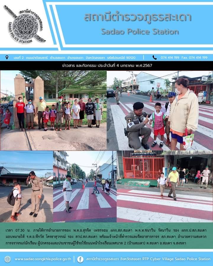 4 ม.ค.67 เวลา 07.30 น. ภายใต้การอำนวยการของ พ.ต.อ.สุรจิต เพชรจอม ผกก.สภ.สะเดา พ.ต.ท.ชนาวิน รัตนาวิน