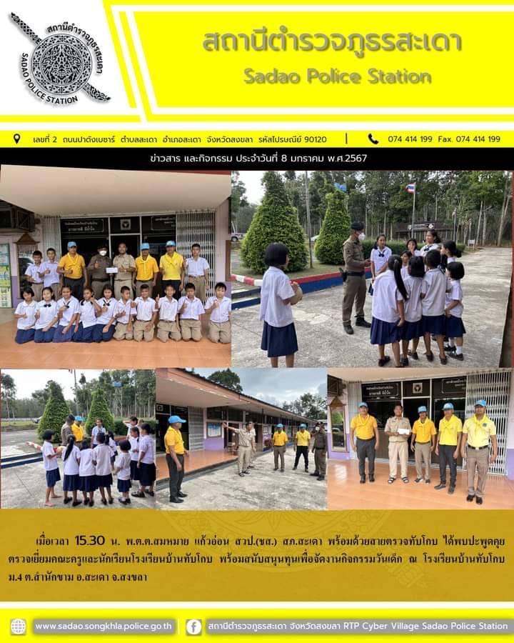 8 ม.ค.67 เวลา 15.30 น. พ.ต.ต.สมหมาย แก้วอ่อน สวป.(ชส.) สภ.สะเดา พร้อมด้วยสายตรวจทับโกบ สนับสนุนทุนเพ
