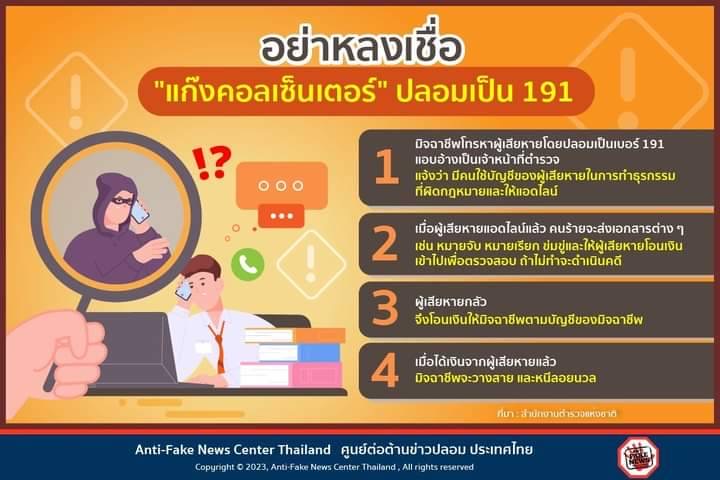 12 ธ.ค.66 อย่าหลงเชื่อ “แก๊งคอลเซ็นเตอร์” ปลอมเป็น 191.ภัยออนไลน์สุดฮิตที่ไม่ว่ากี่ยุค ก