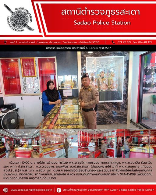 วันที่ 3 เม.ย.67 เวลา 09.00 น. พ.ต.อ.สุรจิต เพชรจอม ผกก.สภ.สะเดา, พ.ต.ท.ชนาวิน รัตนาวิน รอง ผกก.ป.สภ
