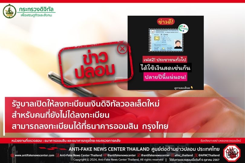 วันที่ 7 ตุลาคม 2567 รัฐบาลเปิดให้ลงทะเบียนเงินดิจิทัลวอลเล็ตใหม่ สำหรับคนที่ยังไม่ได้ลงทะเบียน สามา