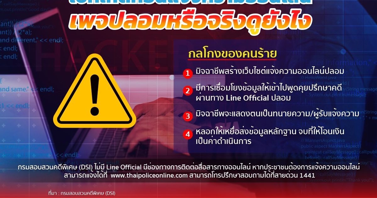 ข้อสังเกต : ตำรวจไซเบอร์ไม่มี Line Official และมีช่องทางแจ้งความช่องทางเดียวคือ www.thaipoliceonline.com สามารถโทรปรึกษาสอบถามได้ที่สายด่วน 1441