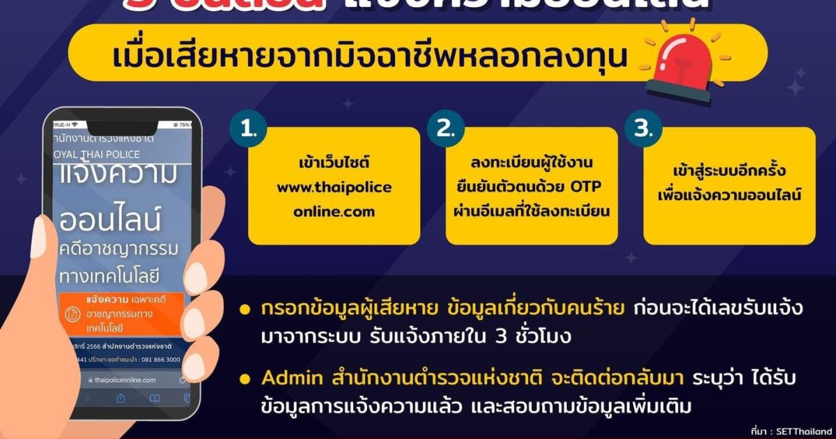 3 ขั้นตอน แจ้งความออนไลน์ เมื่อเสียหายจากมิจฉาชีพหลอกลงทุน