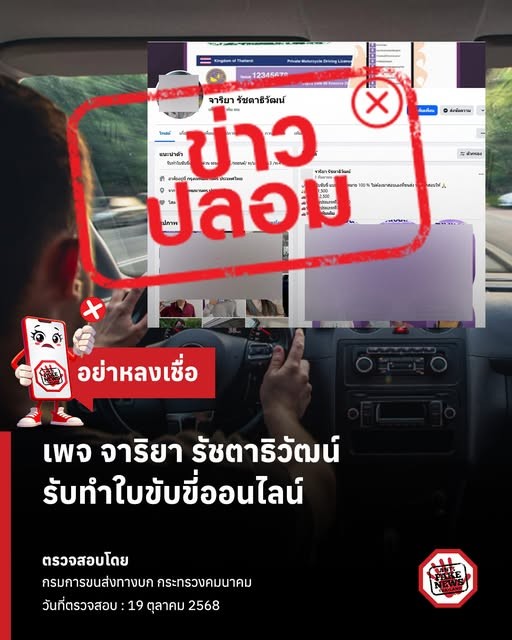 20 ต.ค.68 แชร์ไป เตือนภัยคนใกล้ตัว . เพจ จาริยา รัชตาธิวัฒน์ รับทำใบขับขี่ออนไลน์ . ระวังมิจฉาชีพหลอ