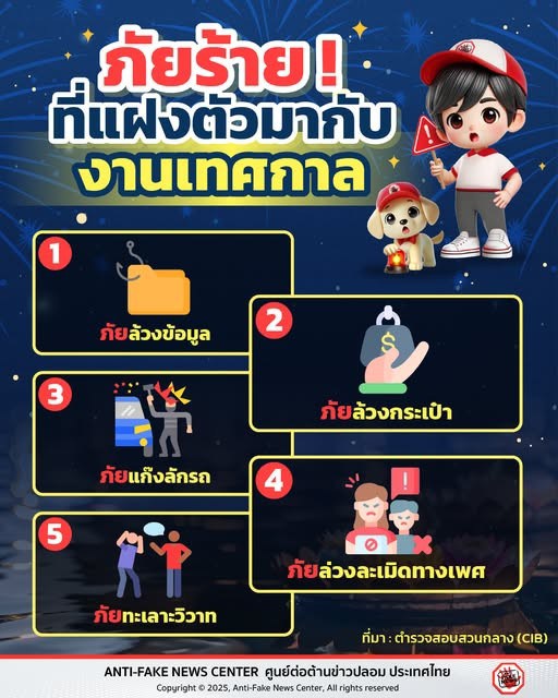 3 พ.ย.68 ภัยร้ายที่แฝงตัวมากับงานเทศกาล . ทุกเทศกาล มิจฉาชีพมักจะฉวยโอกาสที่จะแฝงตัวเข้ามาตีเนียนสร้