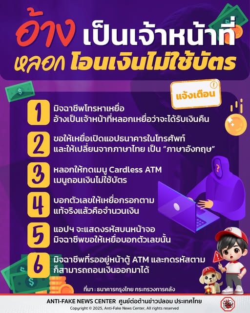 11 พ.ย.68 อ้างเป็นเจ้าหน้าที่หลอกโอนเงินไม่ใช้บัตร . กลลวงใหม่ มิจฉาชีพจะโทรศัพท์แอบอ้างเป็นเจ้าหน้า