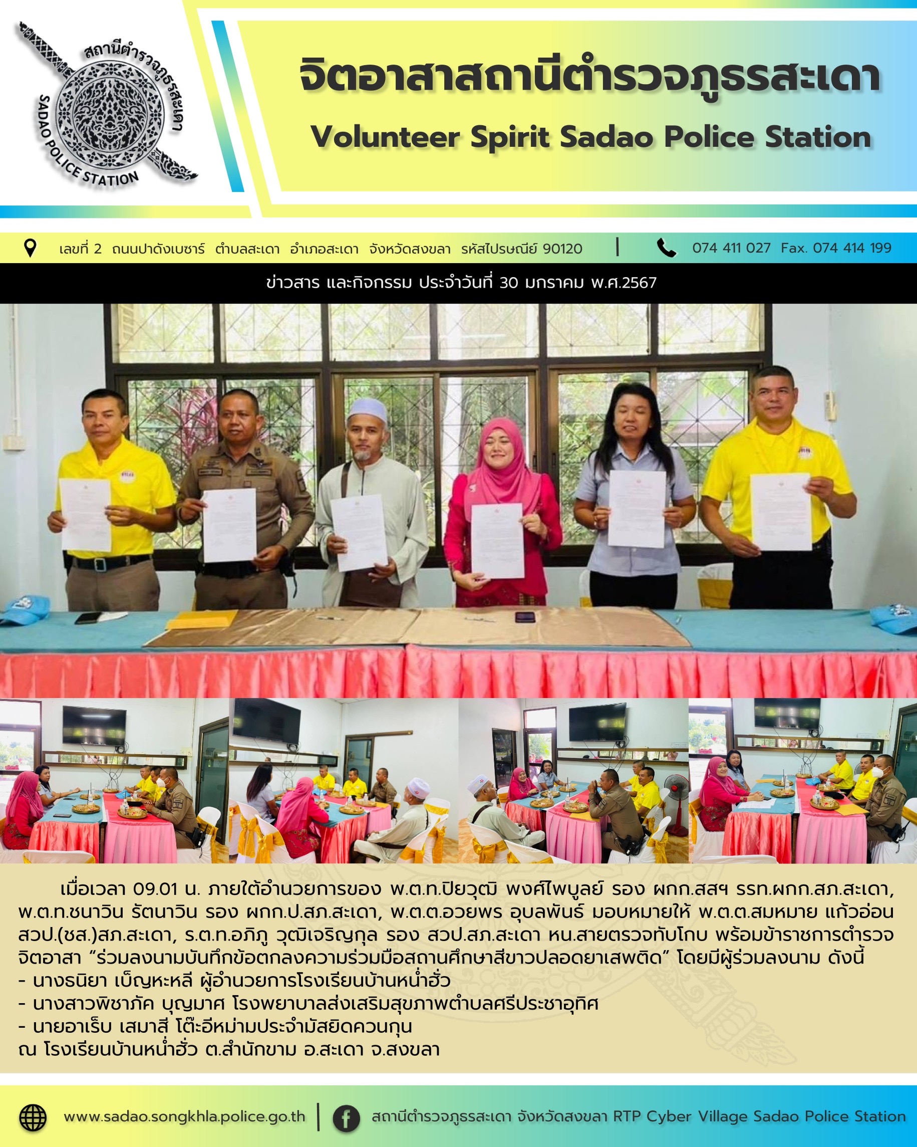 วันที่ 1 กุมภาพันธ์ 2567 ภายใต้การอำนวยการของ พ.ต.ท.ชนาวิน รัตนาวิน รอง ผกก.ป.สภ.สะเดา รรท.ผกก.สภ.สะ