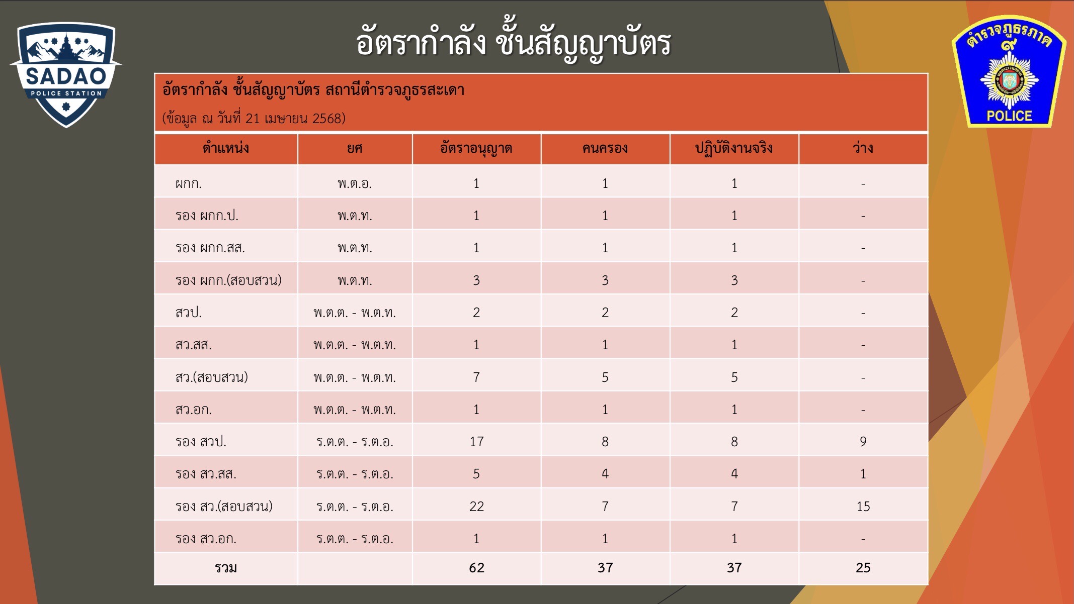 ข้อมูล ณ วันที่ 31 มีนาคม 2568