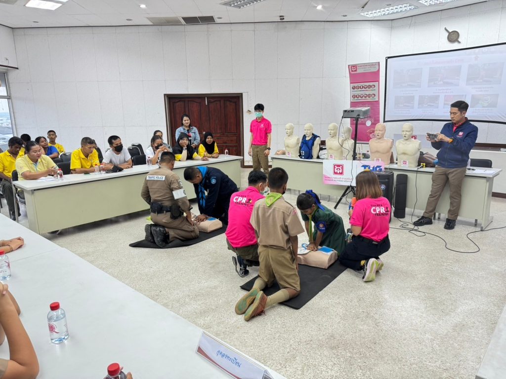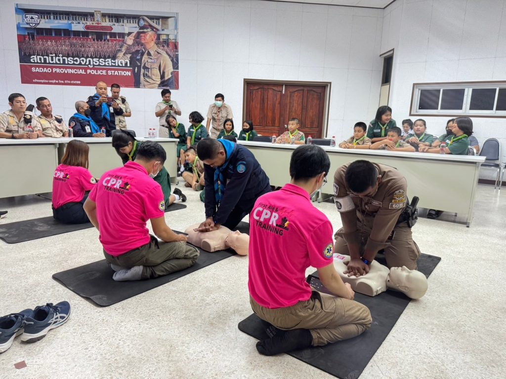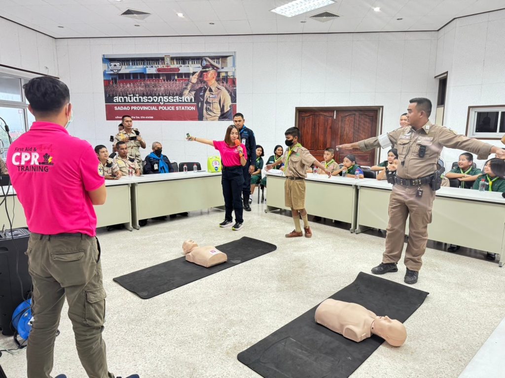 วันที่ 12 ธันวาคม 2567 เวลา 13.30 น. พ.ต.อ.สุรจิต เพชรจอม ผกก.สภ.สะเดา, พ.ต.ท.ชนาวิน รัตนาวิน รอง ผกก.ป.สภ.สะเดา พร้อมด้วยข้าราชการตำรวจ สภ.สะเดา ภาคีเครือข่ายภาคประชาชน ทสปช. อสม. ฝ่ายปกครอง และนักเรียนโรงเรียนเทศบาล 1 ต.สะเดา อ.สะเดา จ.สงขลา ร่วมต้อนรับคณะวิทยากร พยาบาลวิชาชีพ ศูนย์อุบัติเหตุฉุกเฉินโรงพยาบาลธนบุรี ราษฎร์ยินดี โดย สภ.สะเดา ได้จัดทำโครงการส่งเสริมการเรียนรู้ “Sadao Learning Project” ร่วมกับโรงพยาบาลธนบุรี ราษฎร์ยินดี จัดกิจกรรมอบรบ “หลักสูตร Basic Life Support & AED การช่วยฟื้นคืนชีพขั้นพื้นฐาน (CPR )” ด้วยการใช้เทคโนโลยี CPR BAND ในการตรวจวัดและประเมินการกดนวดหัวใจอย่างถูกวิธี โดยบรรยายและสาธิตวิธีการช่วยฟื้นคืนชีพขั้นพื้นฐาน พร้อมวิธีการใช้เครื่องกระตุ้นไฟฟ้า AED ซึ่งวัตถุประสงค์การฝึกอบรมในครั้งนี้ สามารถนำไปปฏิบัติในกรณีเผชิญเหตุฉุกเฉินที่เกี่ยวกับชีวิตหรือร่างกาย ในการปฐมพยาบาลเบื้องต้นแก่ผู้ได้รับบาดเจ็บได้อย่างทันท่วงที ก่อนที่ทีมกู้ชีพ กู้ภัย ทีมพยาบาลจะมาถึงที่เกิดเหตุ ณ ห้องประชุมชั้น 4 สภ.สะเดา